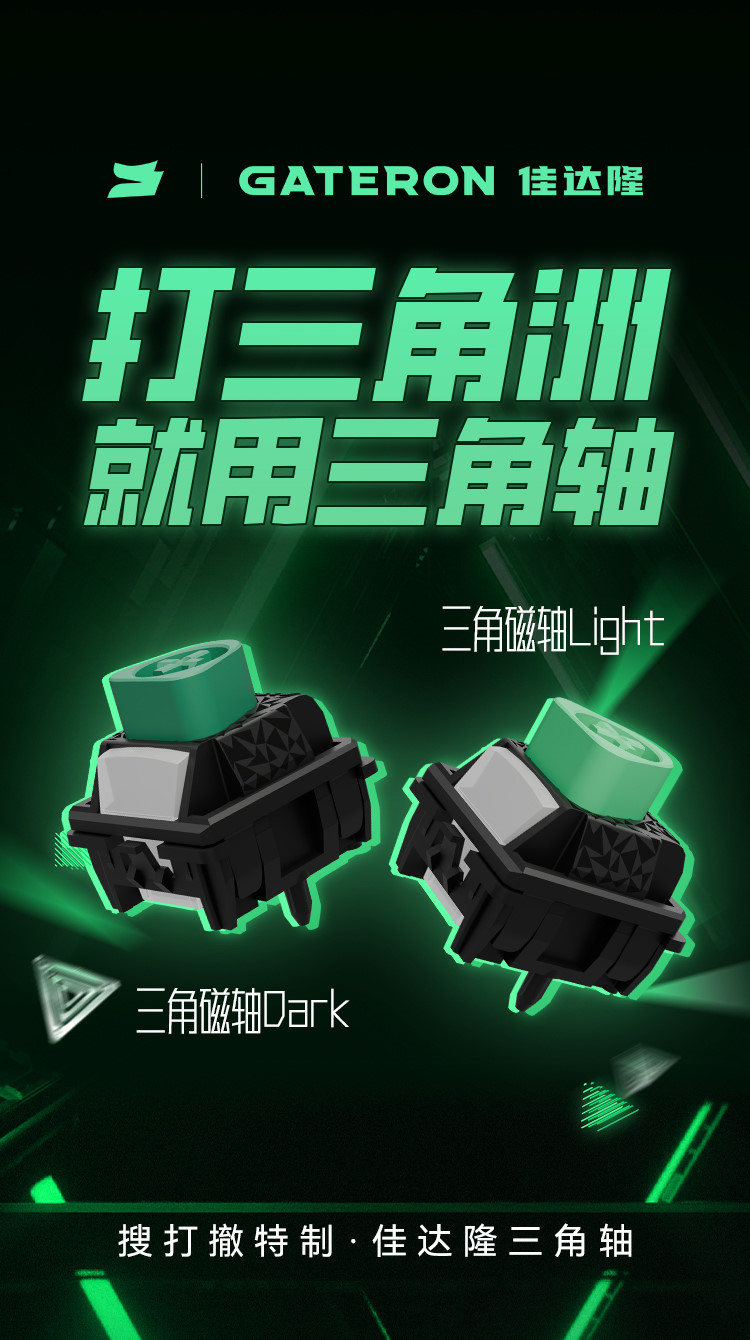 Gateron 佳達隆三角軸 Light / Dark (Jade Delta Light / Dark) Gateron 佳達隆三角軸分為 Light、Dark 共 2 種版本,革命性的三角形結構軸體,主要為初始力不同,Gateron 佳達隆三角軸 Light 為 33 ± 5 gf,Gateron 佳達隆三角軸 Dark 為 38 ± 5 gf,總行程皆為 3.5 ± 0.1 mm。 Gateron 佳達隆三角軸 2種版本與提醒Gateron 佳達隆三角軸分為 Light、Dark 共 2 種版本,主要為初始力不同,Gateron 佳達隆三角軸 Light 為 33 ± 5 gf,Gateron 佳達隆三角軸 Dark 為 38 ± 5 gf,軸體顏色深淺不同來區隔,其餘規格特色完全相同,請依自己的習慣力道選擇即可。此外,請注意 Gateron 佳達隆三角軸磁軸 ( Gateron Magnetic Jade Delta HE Switch )專門提供磁軸鍵盤(霍爾效應鍵盤,Hall effect keyboards / magnetic keyboards)設計使用,不支援機械式鍵盤。對於磁性鍵盤相容性為 N 極朝下設計的 PCB 電路板為主,因此只要支援 N 極朝下設計的鍵盤型號都能支援,請在購買產品前先檢查您的鍵盤。 軸心採用三角型軸體設計Gateron 佳達隆三角軸 (Light、Dark) 採用革命性的三角形結構軸體設計,確保平台按壓極致穩定性,提供操作一致且無誤觸問題。整體來說,提供精準的精準度,徹底稱霸。 專為遊戲「三角洲行動」FPS 遊戲設計Gateron 佳達隆三角軸 (Light、Dark) 專為FPS遊戲打造,為三角洲行動遊戲 (Delta Force)而生。可客製化調整行程動作曲線搭配高回彈設計,專為激烈、快速的遊戲體驗推出。在遊戲中取得競爭優勢,專為三角洲行動 Delta Force、VALORANT 特戰英豪 (或稱瓦、瓦羅蘭、瓦羅蘭特) 與 CS2 冠軍量身打造的磁軸軸體。 外殼精緻黑色兼具卓越質感Gateron 佳達隆三角軸 (Light、Dark) 採用POM材質的頂蓋和桿身,搭配低調的霧面黑色與三角形紋路,讓整體感受出優雅、低調且高級質感吸引眾人目光。 沉浸式聲學體驗的聽覺享受Gateron 佳達隆三角軸 (Light、Dark) 採用背蓋封底式結構,並經過精心調校,呈現標誌性的佳達隆音色。帶來令人無比滿足的清脆點擊聲,將遊戲體驗提升至聲學藝術的高度。 旗艦級磁力,驅動最高效能Gateron 佳達隆三角軸 (Light、Dark) 由 Gateron專有磁鐵工廠設計,由稀土永磁鐵注入貴金屬製成,提供超高固有磁力,確保每個磁軸開關都具有極高一致穩定的磁力,永久防止性能下降。 可拆械式 LED 導光柱設計Gateron 佳達隆三角軸 (Light、Dark) 可依個人需求調整燈光效果,打造個人化體驗。柔和均勻的光芒,帶來舒適的視覺感受。重塑你的戰場,提升你的遊戲體驗。 Gateron 佳達隆三角軸 (Light、Dark) 官方介紹 (簡體) 產品規格與技術支援產品名稱(中文):Gateron 佳達隆三角軸 LightGateron 佳達隆三角軸 Dark產品名稱(英文):Magnetic Jade Delta Switch Light VersionMagnetic Jade Delta Switch Dark Version產品型號:Light:KS-20JDW10B045NWG49 (全潤)Dark:KS-20JDW10B045NWG49 (全潤)廠商名稱:Gateron 佳達隆廠商網站:https://gateron.cn/廠商網站: https://www.gateron.com/產品網頁:https://www.gateron.com/products/gateron-magnetic-jade-delta-switch?VariantsId=11466手感體驗:線性手感潤軸方案:工廠預潤總行程:3.5 ± 0.1 mm初始力:Light:33 ± 5 gfDark:38 ± 5 gf初始磁通量:120 ± 8 Gs (PCB 1.2mm)觸底磁通量:700 ± 30 Gs (PCB 1.2mm)使用壽命:1.5 億分鐘建議售價:新台幣43元/顆